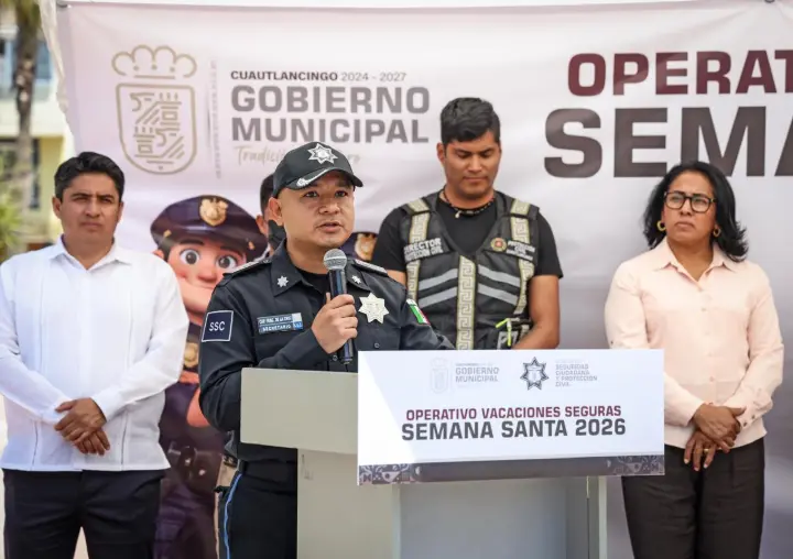 Cuautlancingo, Pue.- Con el objetivo de salvaguardar la integridad de las familias y visitantes durante el periodo vacacional, el Presidente municipal de Cuautlancingo, Omar Muñoz, dio el banderazo de salida al operativo “Vacaciones Seguras Semana Santa 2026”, el cual se llevará a cabo del 27 de marzo al 5 de abril.